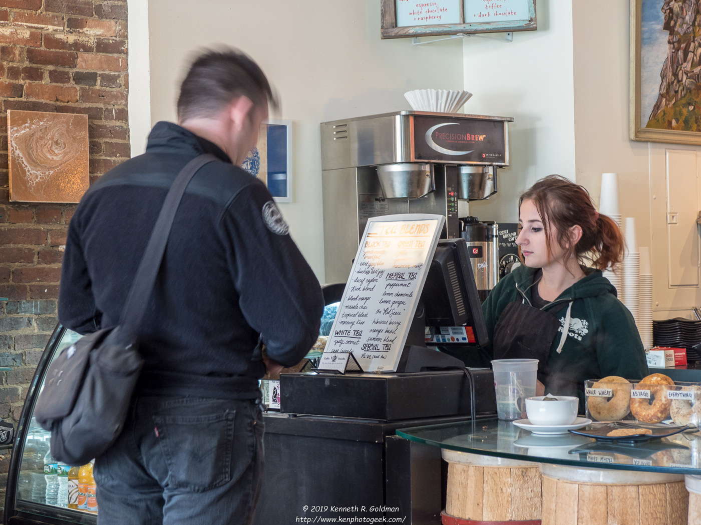 I began this project on a snowy day in March 2014 when I found myself sitting at the window of the Starbucks on L Street NW near the Farragut North Metro Station, Washington, DC. As I sat there, sipped tea and read, I decided to take pictures of the people passing by. I next expanded this project to also include photos taken inside various Starbucks, as well as other coffee shops and cafes.